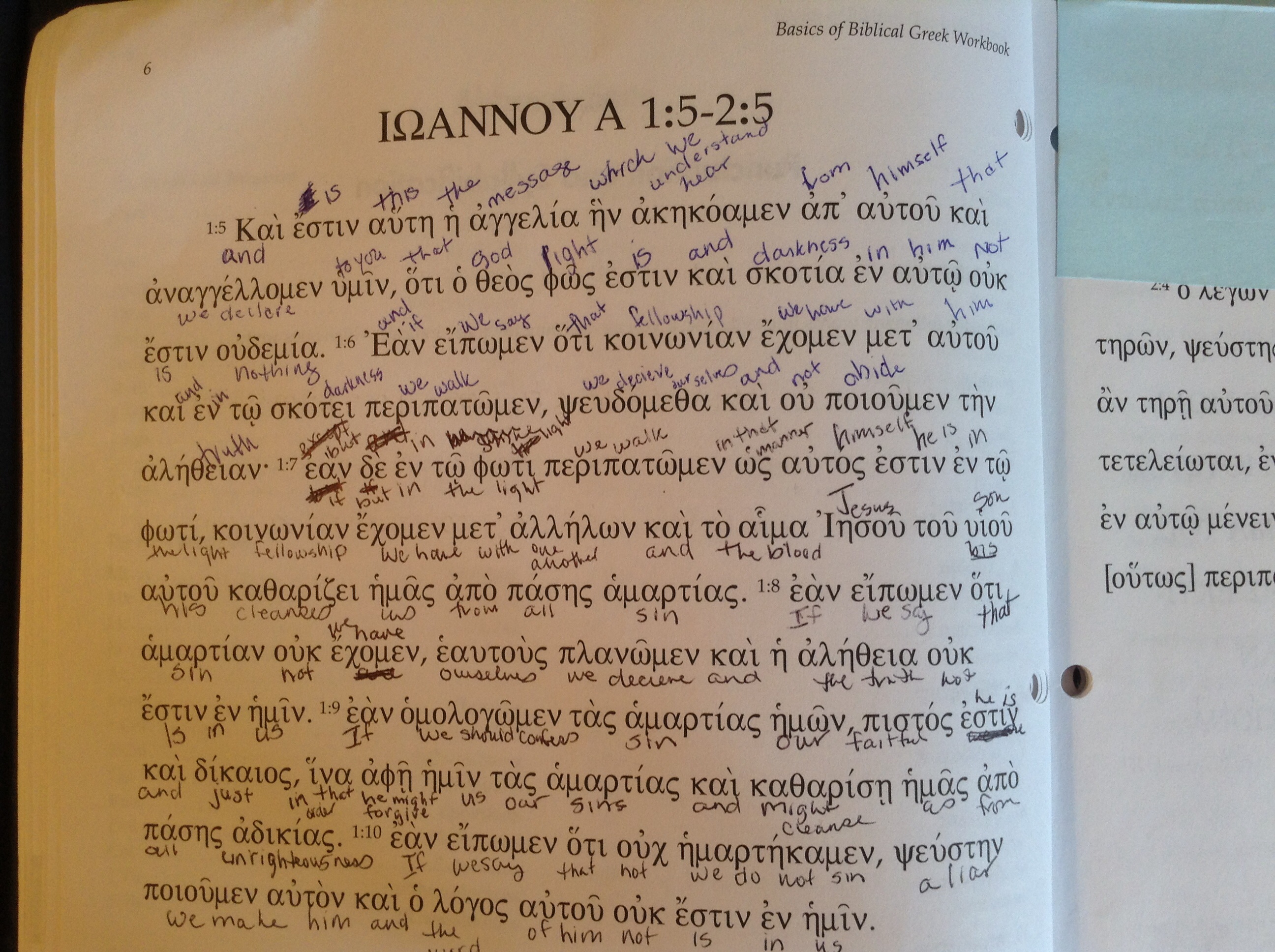 My first two Greek courses were taken over seven years ago, when I was a student in another program. At that time, I was doing very well in most of my Seminary courses. I was not, however, doing well in the rest of my life. God still had a lot of work to do in me. My life was not manageable. My marriage was troubled. I had horrible coping skills. I suffered from panic attacks and addictive behaviors. My finances were not well managed. I was a mess.